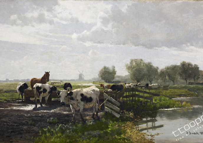 池塘邊的牛群 Animals on a Meadow in a Dutch Landscape